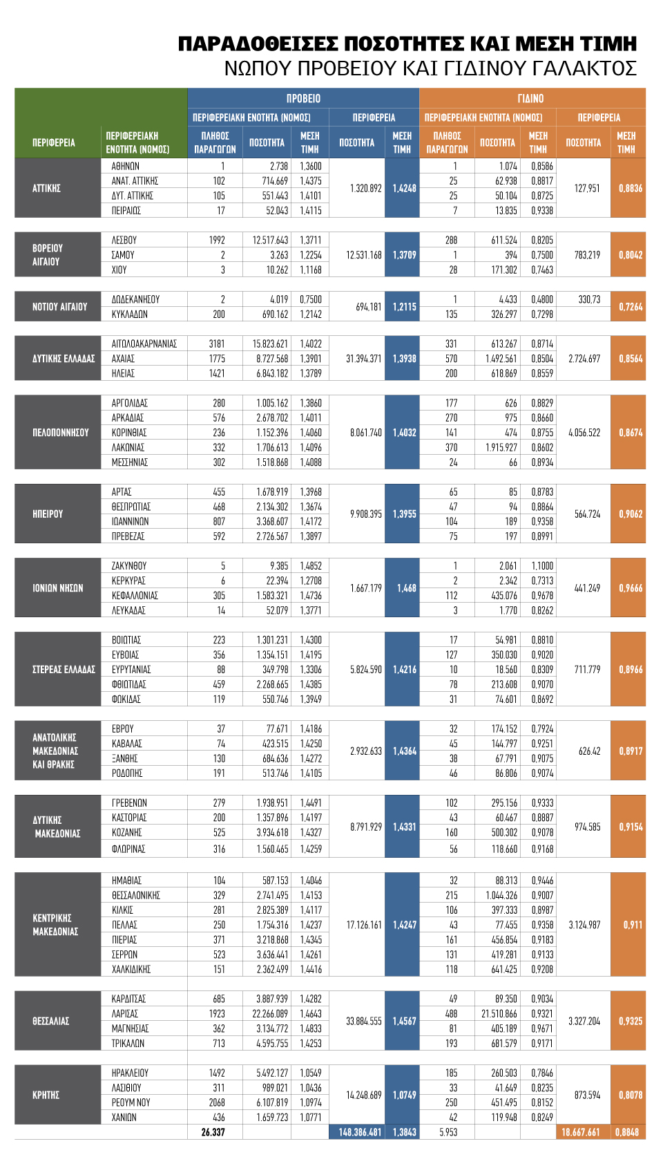 ∆εν είναι τυχαίο το γεγονός ότι εκεί όπου δραστηριοποιούνται εντονότερα τα Ελληνικά Γαλακτοκοµεία, ανθούν και οι µεγάλες κτηνοτροφικές µονάδες της αιγοπροβατοτροφίας. Κάπως έτσι, στη Θεσσαλία για παράδειγµα, το γάλα δείχνει να πληρώνεται καλύτερα απ’ ότι στην Ήπειρο (βλέπε σχετικό πίνακα), όπου ο κύριος όγκος των κτηνοτροφικών µονάδων είναι ακόµα ελεύθερης βοσκής και φυσικά µικρότερου µεγέθους.