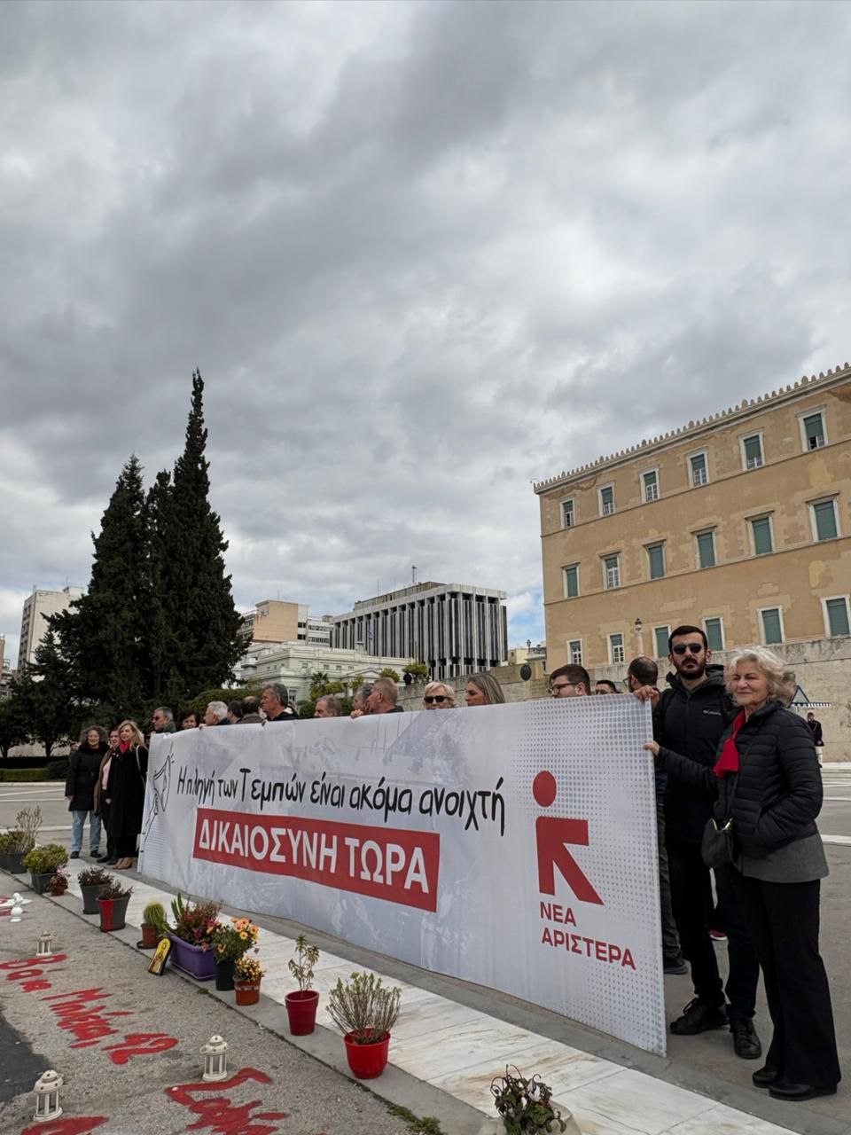 «Δικαιοσύνη τώρα»: Πανό για τα Τέμπη από τη Νέα Αριστερά στο μνημείο του Αγνώστου Στρατιώτη