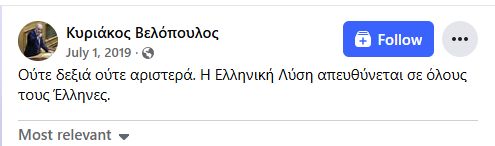 Ανάρτηση του προέδρου της Ελληνικής Λύσης λίγες μέρες πριν τις εκλογές του 2019.