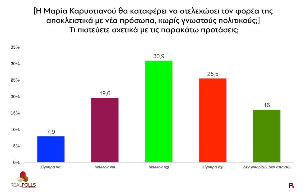 Ανακατάξεις καταγράφονται στο πολιτικό σκηνικό, σύμφωνα με τη νέα δημοσκόπηση της Real Polls, στον απόηχο της ανακοίνωσης της κας Μαρίας Καρυστιανού πως θα κατέλθει στις επόμενες εκλογές με δικό της κόμμα.