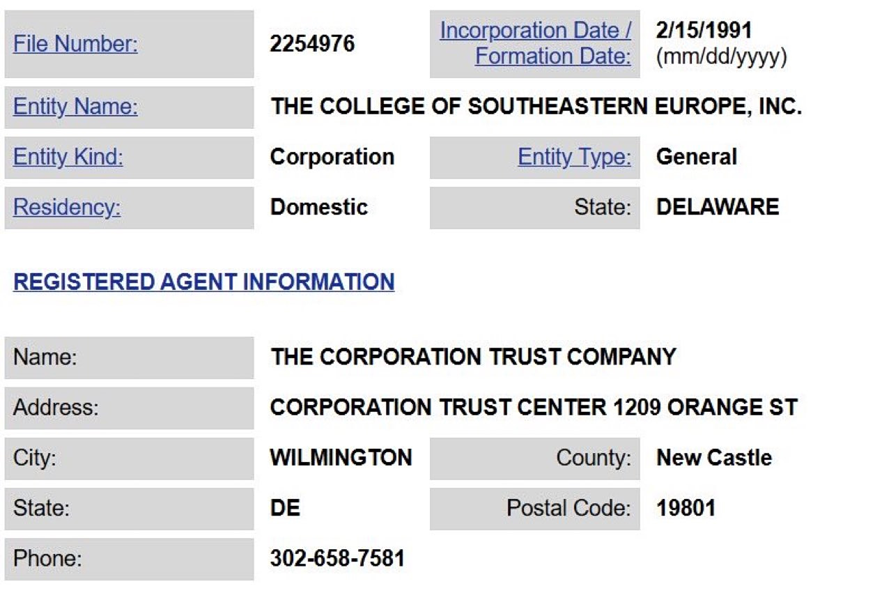 Η εξήγηση για τις δύο νομικές μορφές που σχετίζονται με το ίδρυμα, εξηγούνται από το ιστορικό της υπόθεσης και τις αλλαγές στη «μαρκίζα». Το «College of the Southeastern Europe» ξεκίνησε να χρησιμοποιεί την ονομασία American University of Athens (AUA) σταδιακά από τα μέσα της δεκαετίας του 1990 (γύρω στο 1995) χωρίς καμία απολύτως ακαδημαϊκή αναβάθμιση βάσει του ελληνικού νόμου.