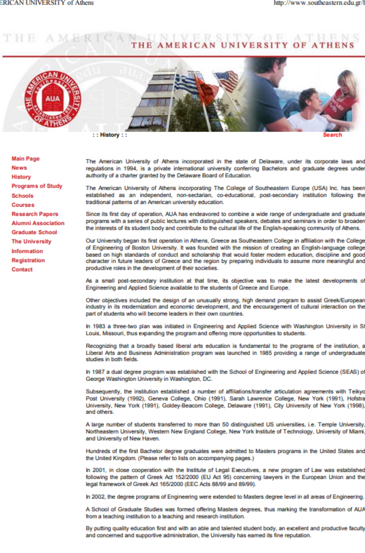 Το ότι πρόκειται για την ίδια ακριβώς επιχείρηση φαίνεται και από τα πρόσωπα της διοίκησης, αλλά και από το γεγονός ότι στην αναζήτηση του «ιστορικού» του ιστότοπου του κολλεγίου Southeastern φαίνεται η αλλαγή της ονομασίας του σε AUA.