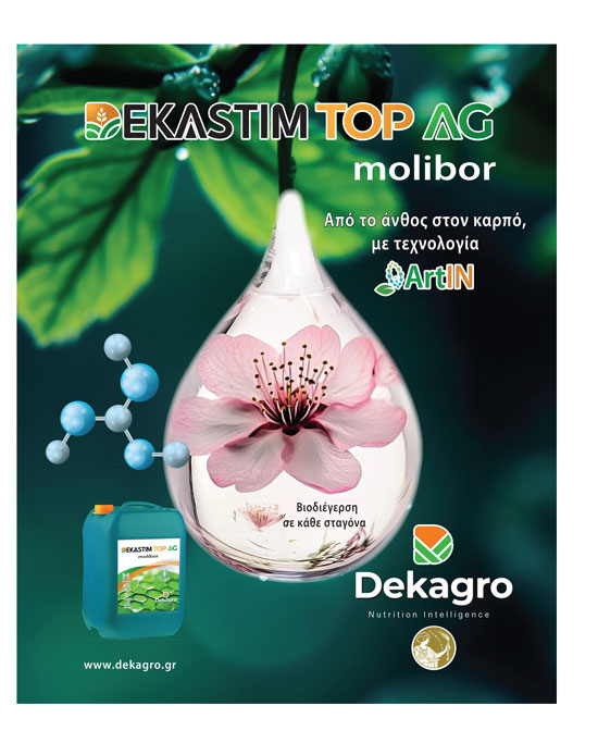 Η νέα σειρά υγρών λιπασµάτων DEKASTIM TOP AG έχει σχεδιαστεί για να ανταποκρίνεται στις αυξηµένες απαιτήσεις της ελιάς στα στάδια της ανθοφορίας και της καρπόδεσης, συνδυάζοντας στοχευµένη θρέψη µε ισχυρή βιοδιεγερτική δράση.