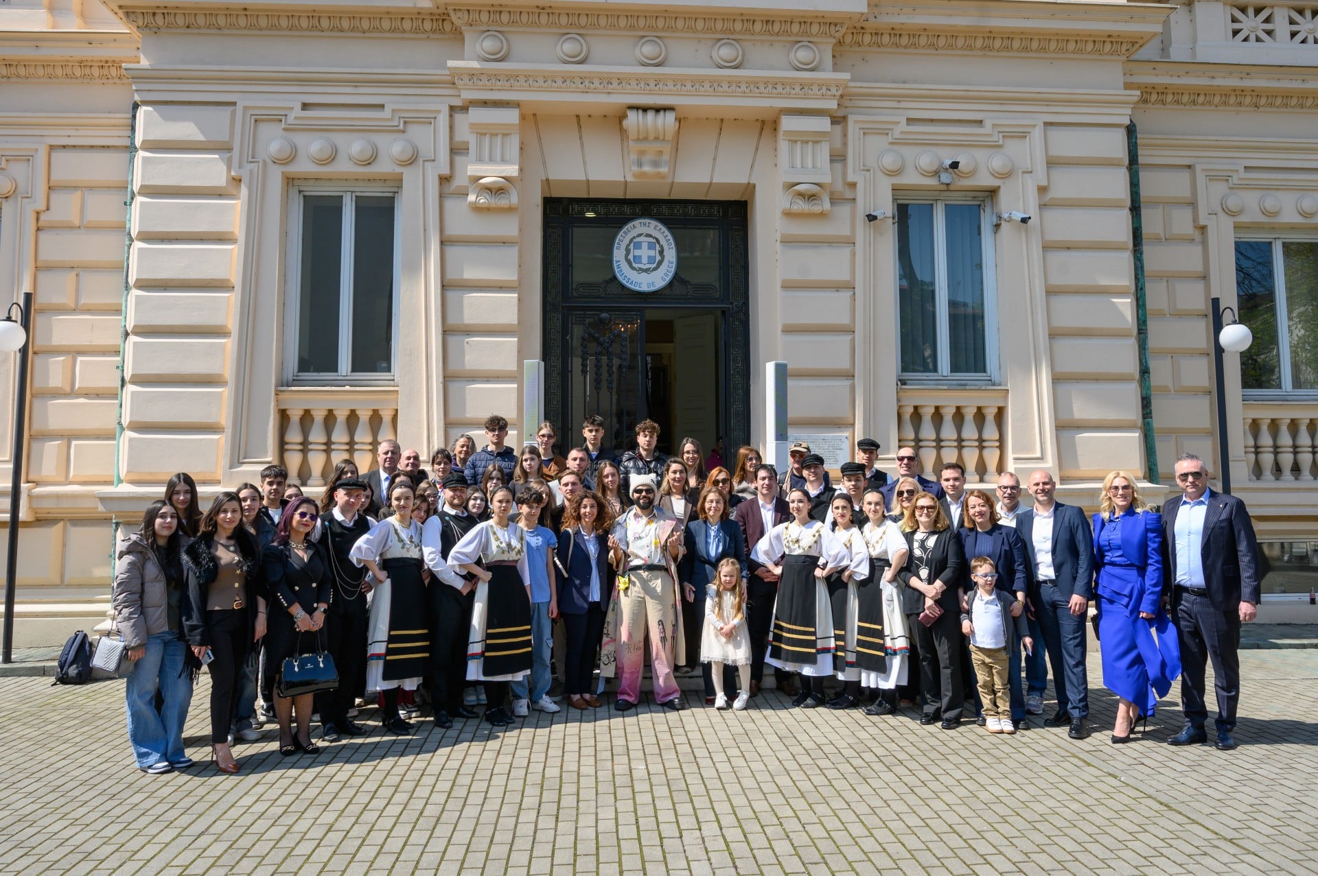 Σε ένα ιδιαίτερα θερμό και εορταστικό κλίμα, ο Akylas συνομίλησε με τον κόσμο που είχε συγκεντρωθεί, ενώ ξεχωριστή στιγμή ήταν η υποδοχή του από την ομάδα «Kymata» της Ένωσης Ελλήνων Ρουμανίας, με παραδοσιακούς χορούς και φορεσιές από τη Μακεδονία.