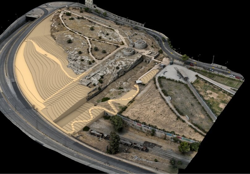 Γενική άποψη του αρχαιολογικού χώρου της Ηετιώνειας Πύλης Πειραιά. Υφιστάμενη κατάσταση