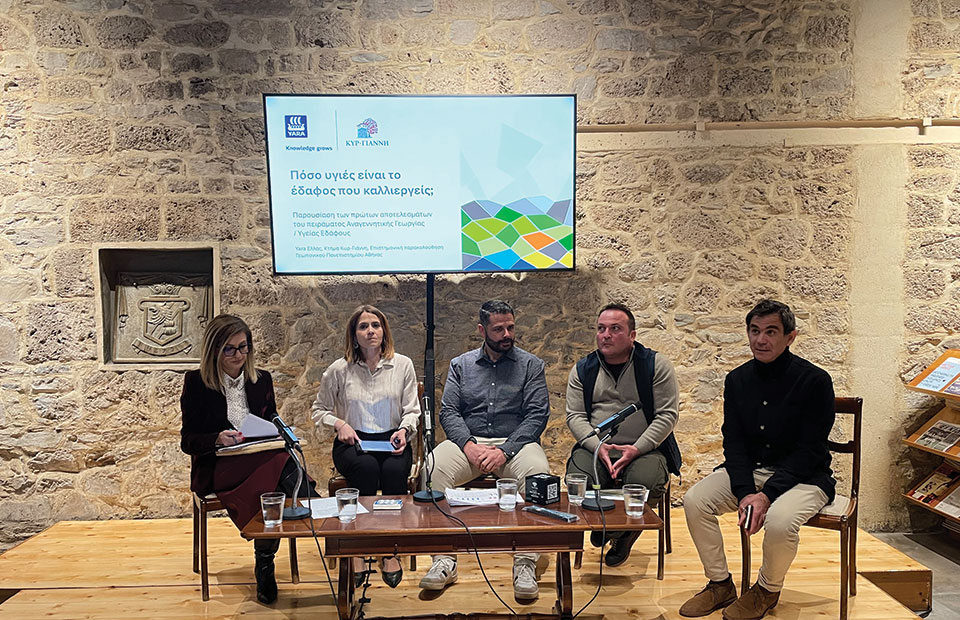 H συνεργασία, η τεκµηρίωση και η υιοθέτηση ενός κοινού πρωτοκόλλου, που θα προσαρµόζεται ανάλογα µε την περιοχή και το είδος της καλλιέργειας, είναι αναγκαίες συνθήκες για να γίνει αποτελεσµατικά η µετάβαση προς το µοντέλο της Αναγεννητικής γεωργίας, το οποίο δεν στοχεύει απλώς στη διατήρηση της υγείας του εδάφους και εν γένει του οικοσυστήµατος, αλλά επιδιώκει και τη βελτίωσή τους. Το συµπέρασµα αυτό προέκυψε από τους συµµετέχοντες σε εκδήλωση για την παρουσίαση των αποτελεσµάτων ενός ερευνητικού έργου, που υλοποιούν από κοινού τα τελευταία δύο χρόνια το Κτήµα Κυρ-Γιάννη, η Yara Ελλάς και το Γεωπονικό Πανεπιστήµιο Αθηνών, σε αµπελοτόπια της οινοποιητικής επιχείρησης, µε πρακτικές Αναγεννητικής γεωργίας.