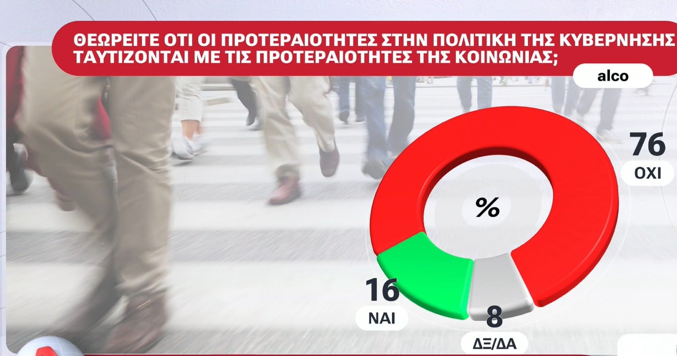 Το 76% δηλώνει ότι οι προτεραιότητες στην πολιτική της κυβέρνησης δεν ταυτίζονται με τις προτεραιότητες της κοινωνίας.