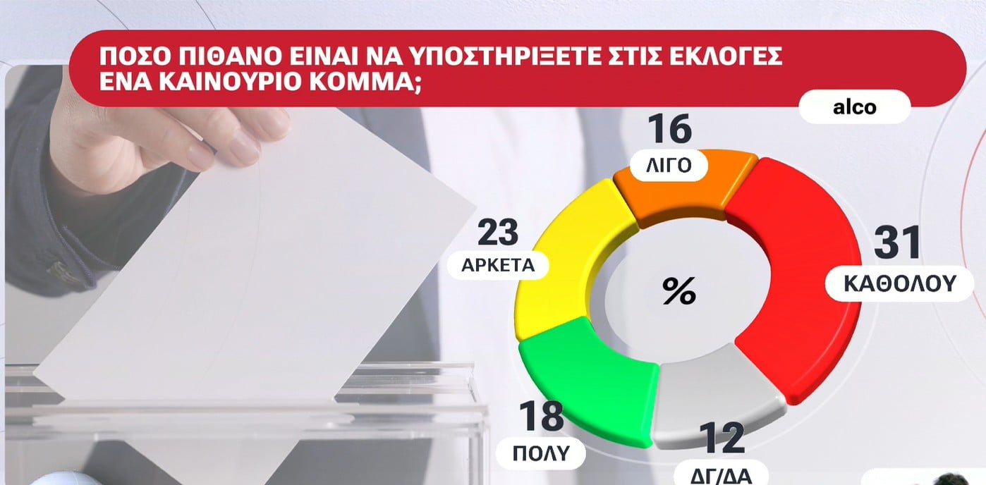 Σε ερώτηση πόσο πιθανό είναι να ψήφιζαν ένα νέο κόμμα, το 18% απάντησε «πολύ» πιθανό, το 23% «αρκετά» – συνολικά 41% – το 31% «καθόλου», το 16% «λίγο» πιθανό.