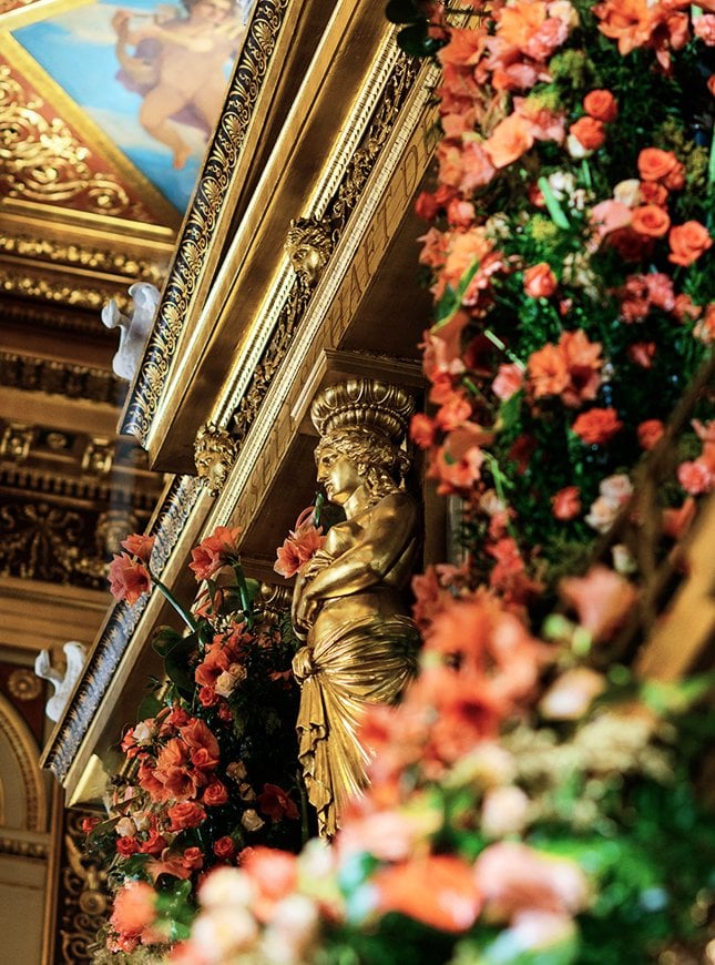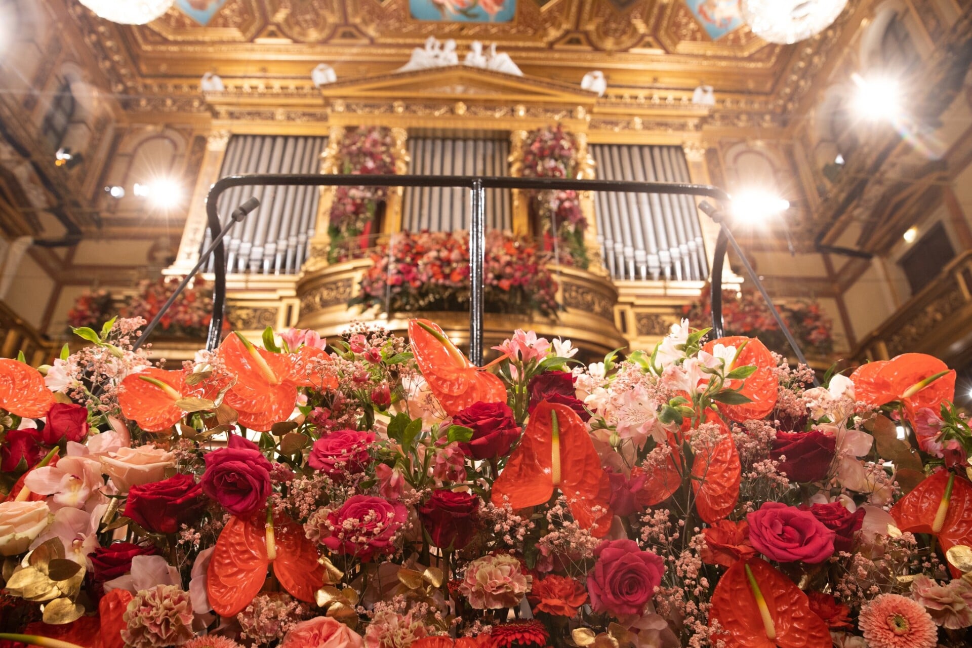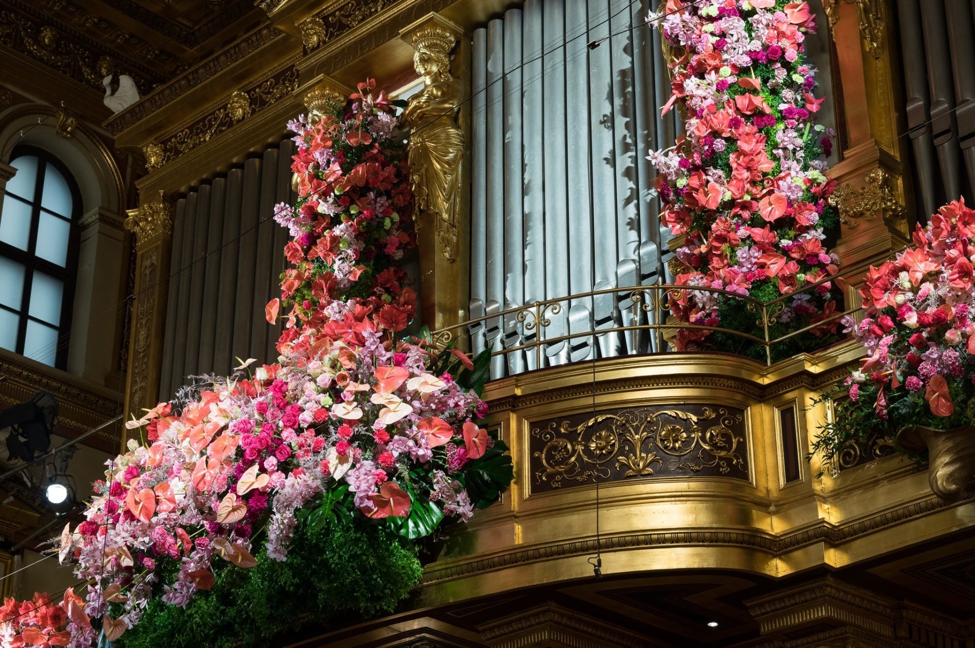 Από το 1980 ως το 2013, τα λουλούδια που διακοσμούσαν τη Χρυσή Αίθουσα προέρχονταν από την Ιταλία, ως ευγενική προσφορά του Δήμου του Σαν Ρέμο. Το 2014 τα προσέφεραν οι ίδιοι οι μουσικοί της ορχήστρας και από το 2015 τα τριαντάφυλλα και ό,τι άλλο χρειάζεται για τον εντυπωσιακό στολισμό της αίθουσας συλλέγονται αποκλειστικά από τους εθνικούς και δημοτικούς κήπους της Βιέννης.