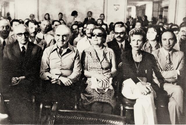 Από την ιστορική εκδήλωση της παρουσίασης της ιδρυτικής διακήρυξης του ΠΑΣΟΚ στις 3 Σεπτεμβρίου του 1974 στο ξενοδοχείο «King Palace». Ο Κώστας Σημίτης κάθεται στην πρώτη σειρά με τον Ανδρέα Παπανδρέου, τον Ιωάννη Κουτσοχέρα, την Αμαλία Φλέμινγκ και τη Σύλβα Ακρίτα