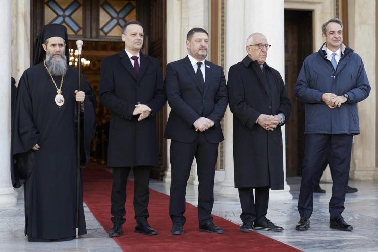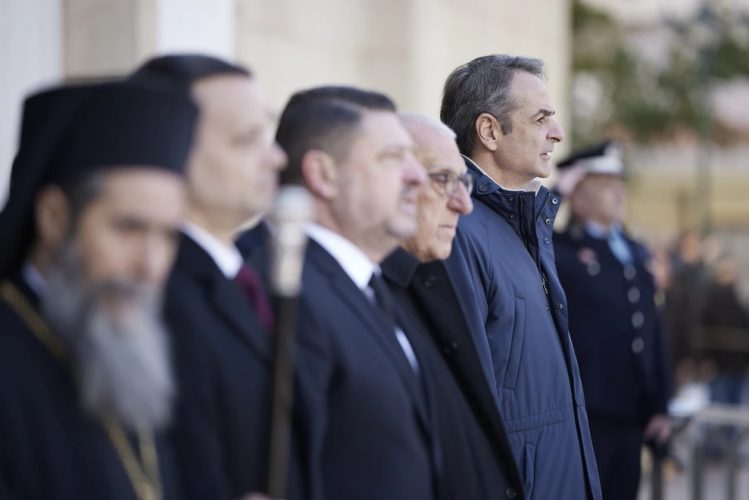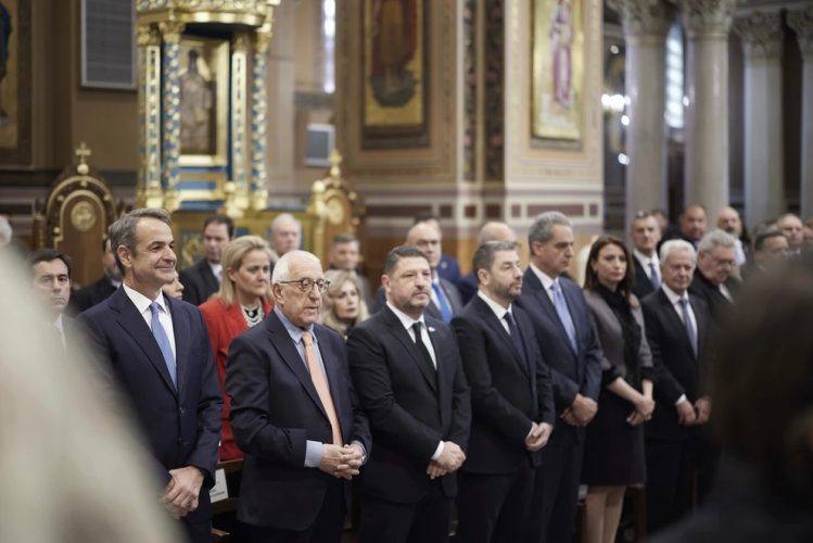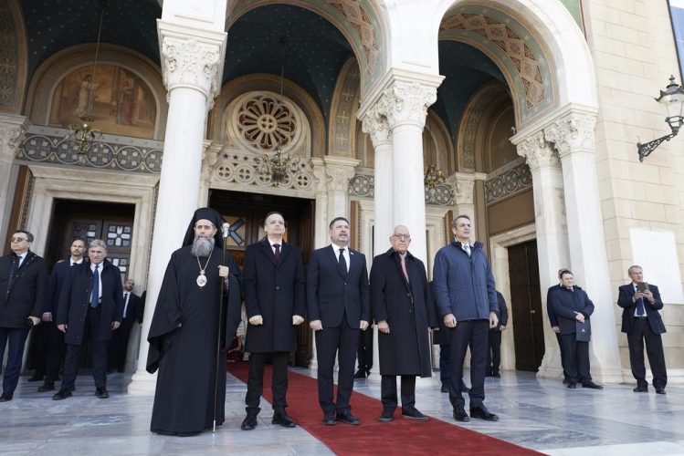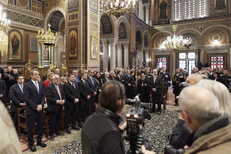 Με ιδιαίτερη λαμπρότητα, παρουσία του Προέδρου της Δημοκρατίας Κωνσταντίνου Τασούλα και του πρωθυπουργού Κυριάκου Μητσοτάκη, τελέστηκε σήμερα το πρωί στον Καθεδρικό Ιερό Ναό Αθηνών υπό τη διοργάνωση της Περιφέρειας Αττικής η καθιερωμένη πανηγυρική δοξολογία για το νέο έτος, χοροστατούντος του Αρχιεπίσκοπου Αθηνών και Πάσης Ελλάδος κ. κ. Ιερώνυμου.