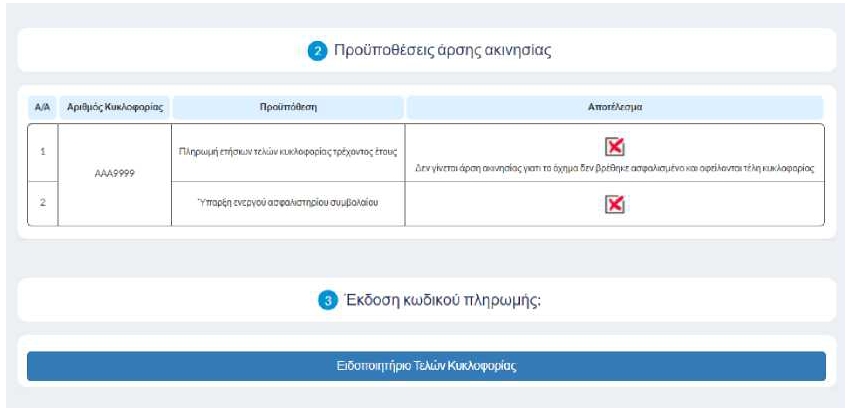 Η δυνατότητα ηλεκτρονικής άρσης ακινησίας οχημάτων καταλαμβάνει τα οχήματα που εμφανίζονται «σε ακινησία» στο