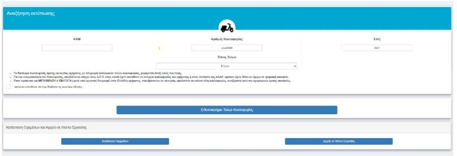 • να εκτυπώσετε τους Κωδικούς Πληρωμής ετησίων ή αναλογικών τελών κυκλοφορίας επιλέγοντας «Ειδοποιητήριο Τελών