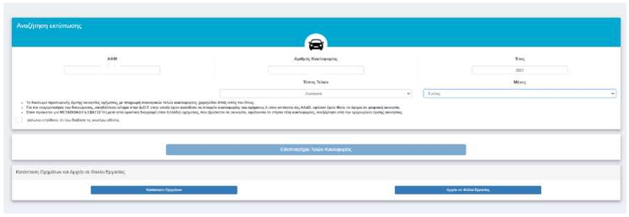 Κυκλοφορίας ή σε περίπτωση που έχετε πλήθος οχημάτων να τους εκτυπώσετε επιλέγοντας «Αρχείο σε Φύλλο