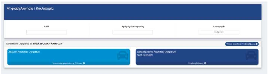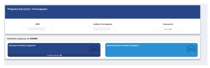2. Στη δεύτερη, με τίτλο «Ψηφιακή Ακινησία/Κυκλοφορία», οι ιδιοκτήτες/κάτοχοι οχημάτων έχουν τη δυνατότητα: