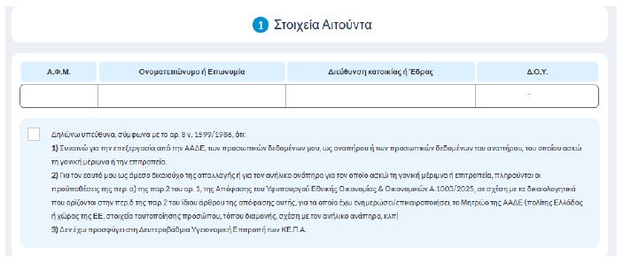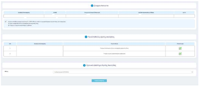 Στην παραπάνω εικόνα εμφανίζονται τα στοιχεία του αιτούντα πολίτη και εφόσον επιλέξει το check box θα εμφανίζεται