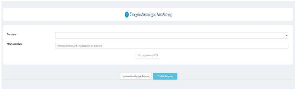 Εικόνα 16. Επιλογή δικαιούχου-καταχώρηση ΑΦΜ