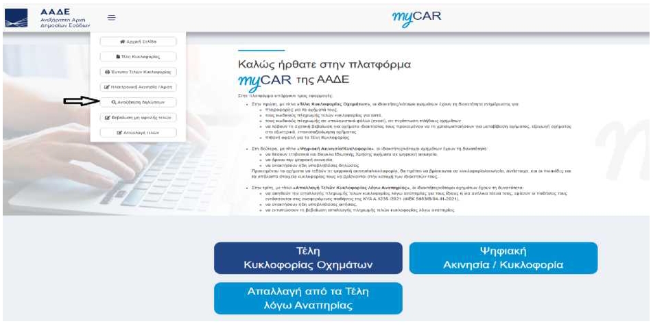 1. Στην πρώτη, με τίτλο «Τέλη Κυκλοφορίας Οχημάτων», οι ιδιοκτήτες/κάτοχοι οχημάτων έχουν τη δυνατότητα