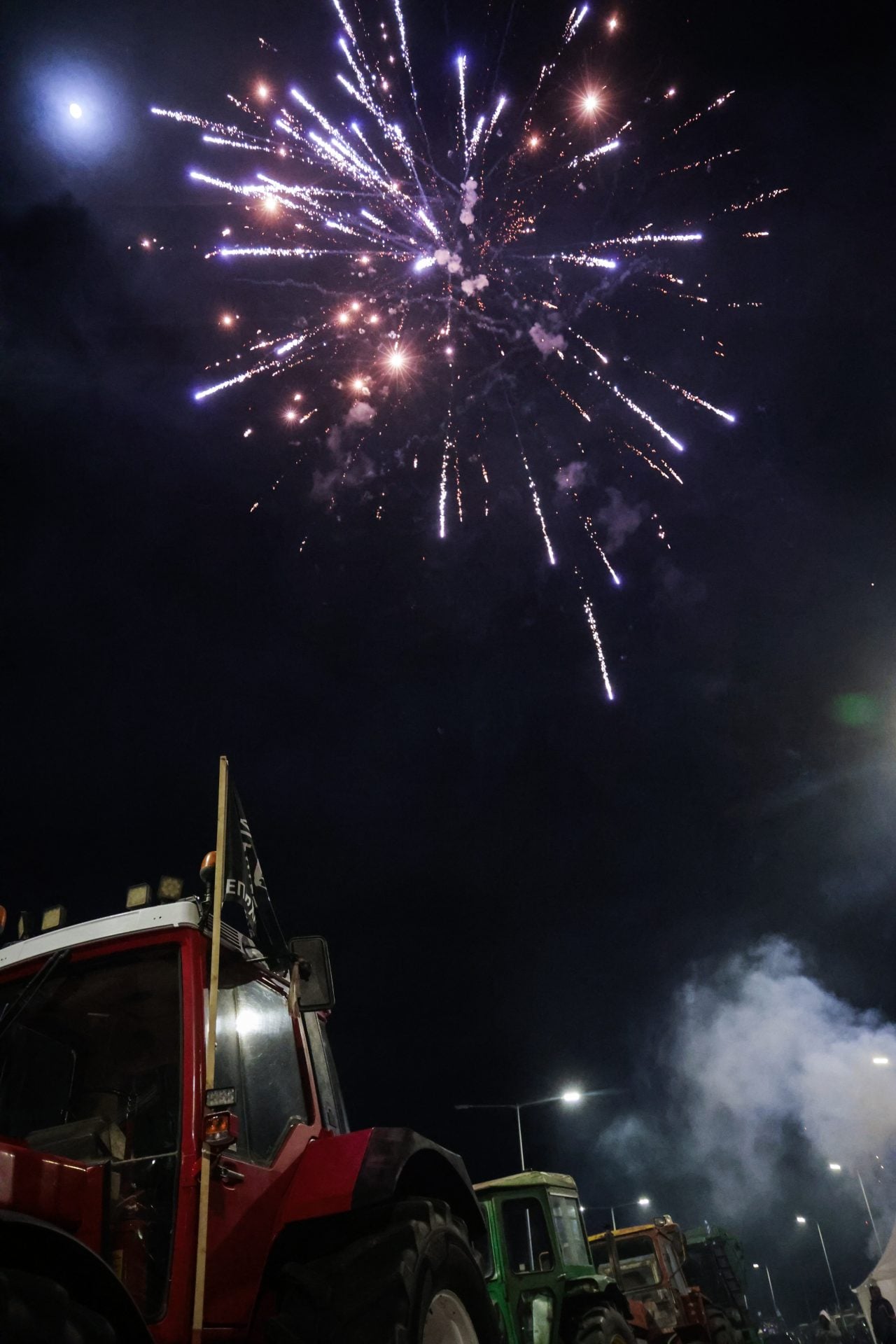 Yποδοχή του νέου χρόνου στο μπλόκο των αγροτών στον κόμβο της εθνικής οδού στη Νίκαια Λάρισας/ Eurokinissi