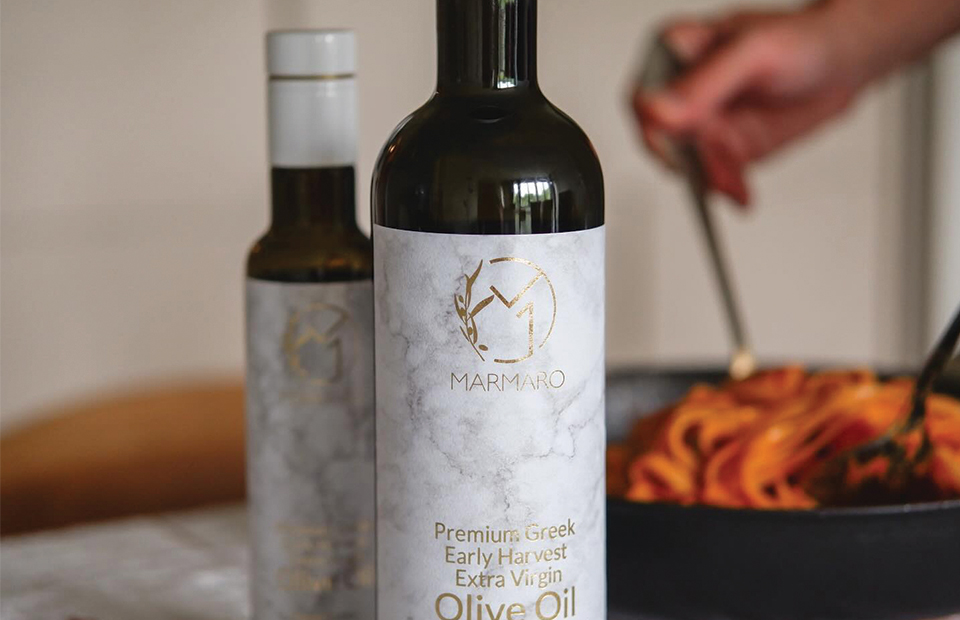 ελιές Χαλκιδικής». Η συγκοµιδή γίνεται µε το χέρι και η διαδικασία ελαιοποίησης περιλαµβάνει ψυχρή έκθλιψη, µε µηχανικά µέσα. Το κύριο χαρακτηριστικό του είναι η χαµηλή οξύτητα και υψηλή περιεκτικότητα σε αντιοξειδωτικά. Δηµιουργός ο γεωπόνος Δηµήτρης Γαρόφαλλος από τον Πολύγυρο Χαλκιδικής, ο οποίος επέκτεινε την οικογενειακή επιχείρηση παραγωγής βρώσιµης ελιάς δηµιουργώντας το brand Marmaro Olive Oil, το οποίο αντιπροσωπεύει δύο τύπους, το Αγουρέλαιο πρόωρης συγκοµιδής και το έξτρα παρθένο ελαιόλαδο, και τα δύο από ποικιλία ελιάς Χαλκιδικής.