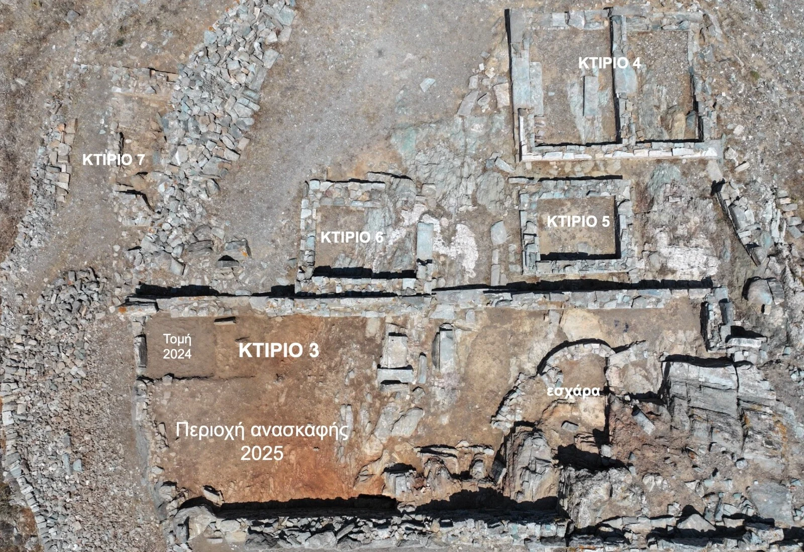 Αεροφωτογραφία του ιερού από τα Δυτικά μετά το πέρας της ανασκαφής 2025 (φωτ. Α. Μαζαράκη Αινιάνος)