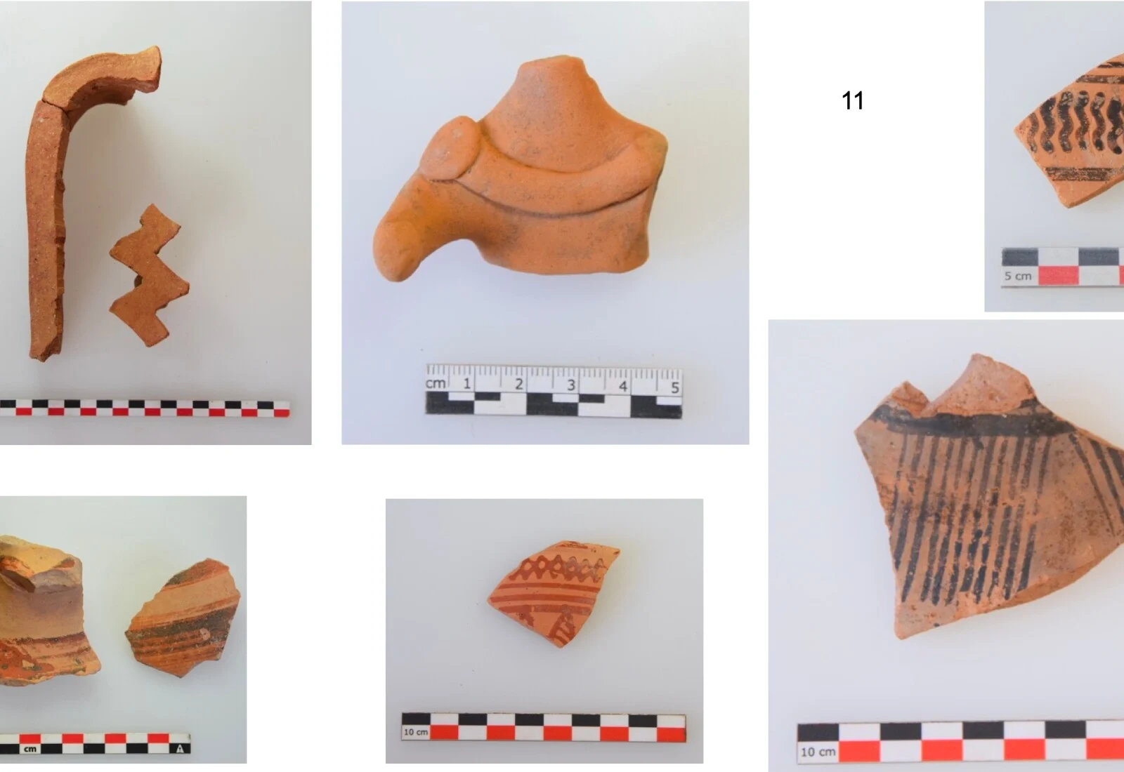 Κτίριο 11. Θραύσματα αγγείων Γεωμετρικών χρόνων (και αρχαϊκού πήλινου ειδωλίου) από την περιοχή του Κτιρίου 11 (φωτ. Εύας Κολοφωτιά)