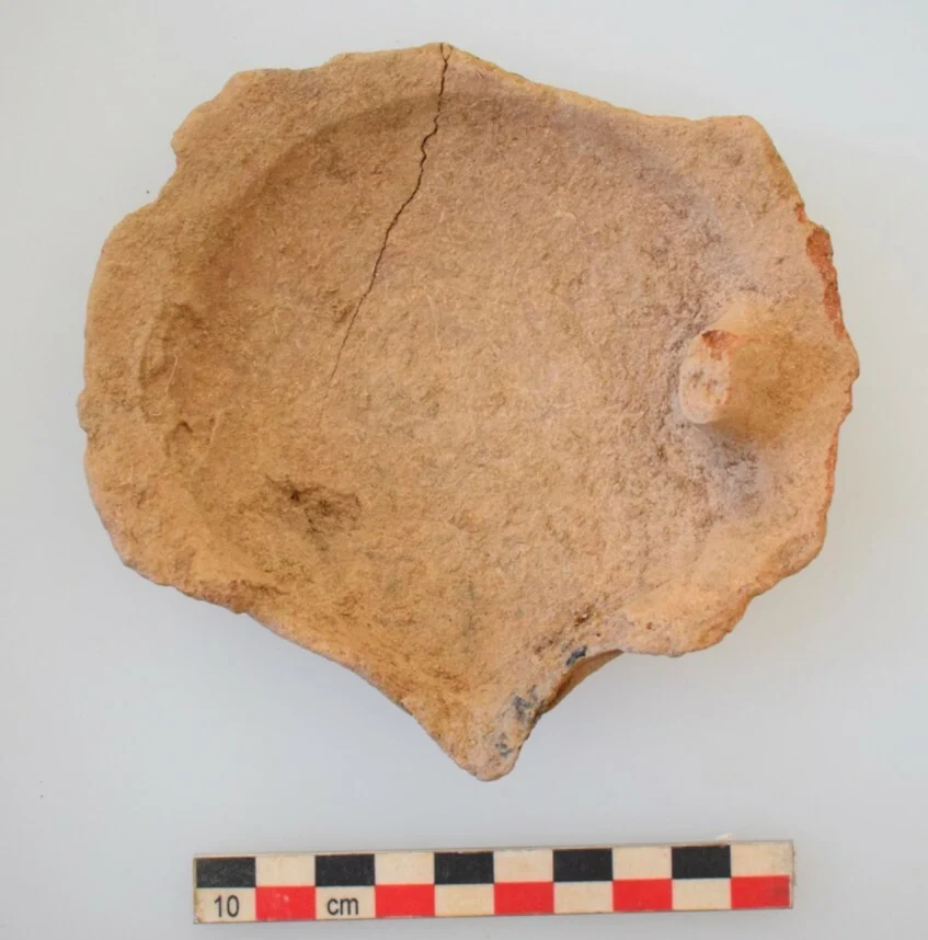 Κτίριο 11. Λύχνος του 7ου αι. π.Χ. από τη ΝΔ γωνία του Βόρειου χώρου του Κτιρίου 11 (φωτ. Εύας Κολοφωτιά)