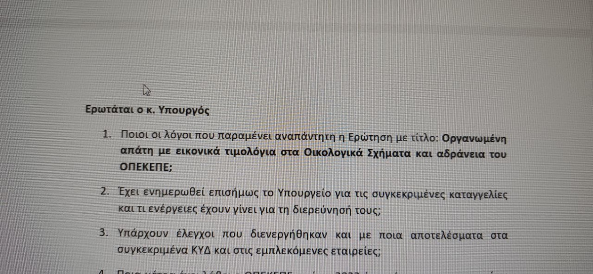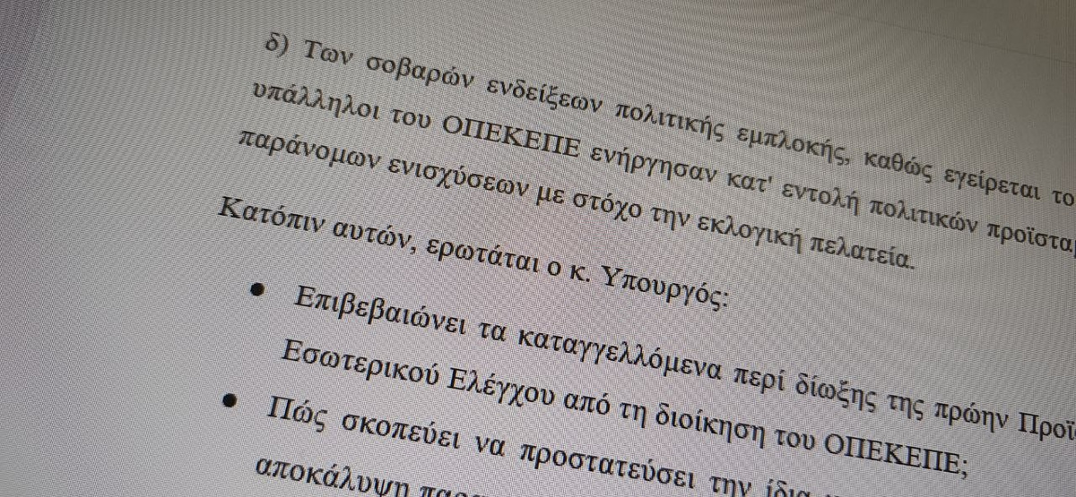 Το σκάνδαλο του ΟΠΕΚΕΠΕ σε κοινοβουλευτικές ερωτήσεις που έμειναν στο «διαβάστηκε»